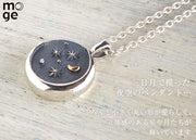 こちらは、つるんとした鏡面仕上げのシルバーと、黒っぽく加工された夜空の部分の対比が美しい、月夜をイメージしたネックレス。