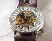 渡辺工房 手作り腕時計 手巻き式 裏スケルトン ジャンボシルバー ゴールドムーブメント [NW-SHW060]