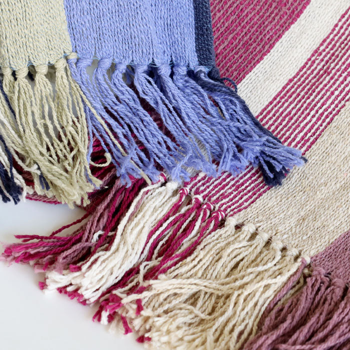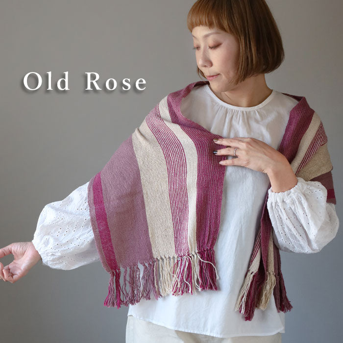 極太のたて糸を使うことで、ほどよい厚みとボリューム感のあるカジュアルな印象に仕げたマフラーです。