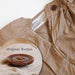 ゴールドのジッパーやオリジナルのロゴ入りボタンなど、細部にこだわりを感じる作りです。