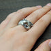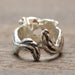2匹のリスが、ちょうど中央で顔を合わせてキスをしている愛らしいデザインのリング。片方のリスは瞳を閉じていて、もう片方はつぶらな瞳をしています。