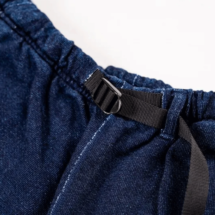 ゴム入りのウエストにはウェービングベルトが付属しているので幅広いサイズ調節が可能。