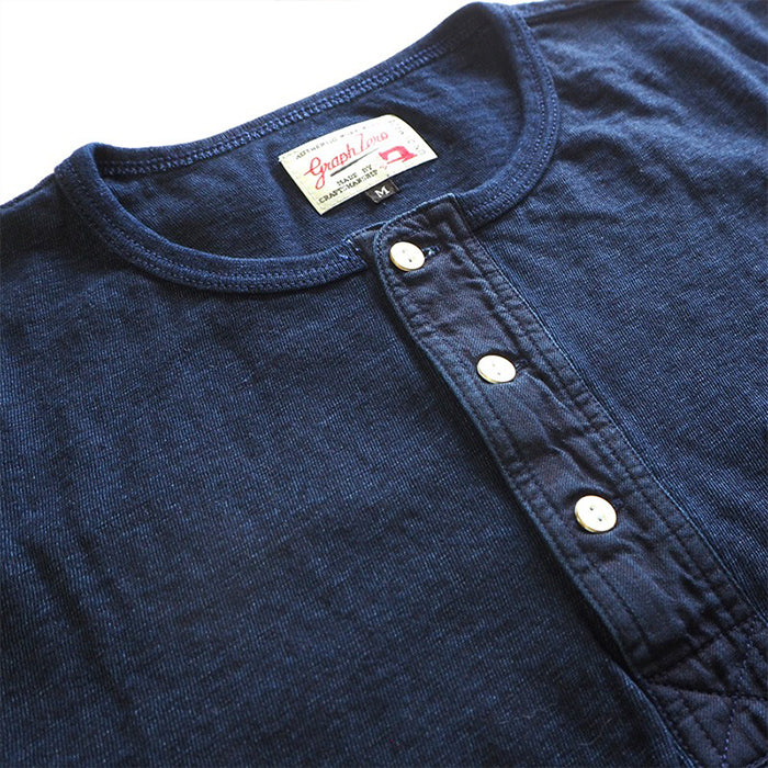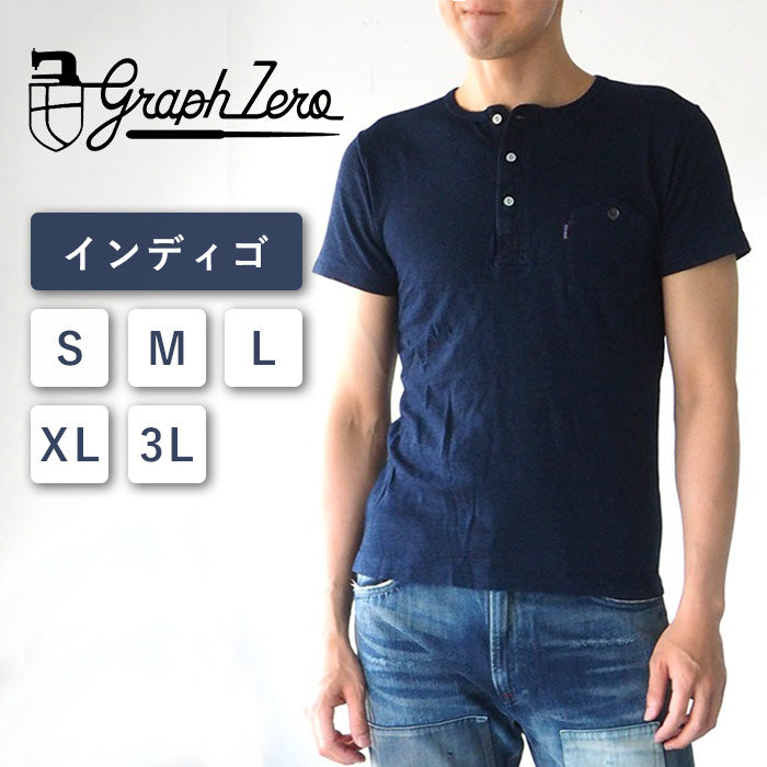 graphzero(グラフゼロ)インディゴ ヘンリーネックTシャツ 半袖 メンズ レディース[GZ-IDTH-0508]