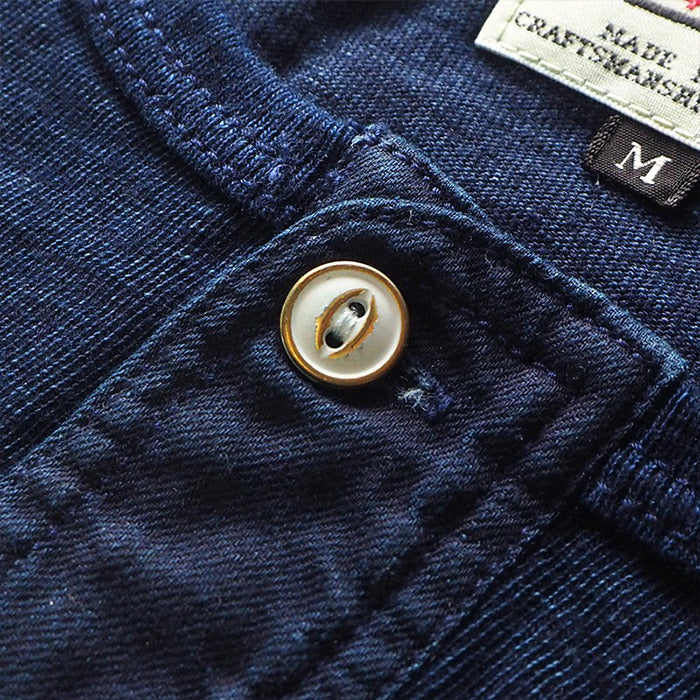 デザインはカジュアルの定番ヘンリーネック。真鍮を削りだして作られた塗装ボタンをあしらい、オリジナリティのあるアイテムに仕上がっています。