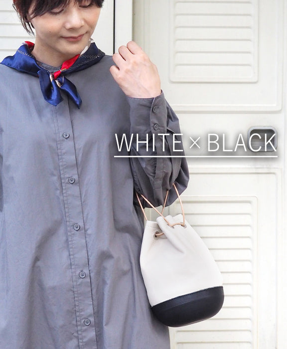 モノクロカラーのオールレザー巾着バッグ