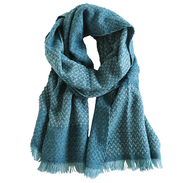 両面ヘリンボーン柄を楽しめるウールコットンマフラー
