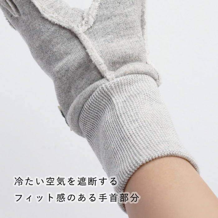 立体的な設計で、尚且つ縫い代が手の甲側にあることで手指の感覚を失いにくく動かしやすいのが特徴です。 上質な大人のためのスウェットグローブです。