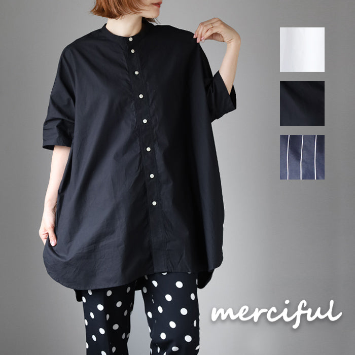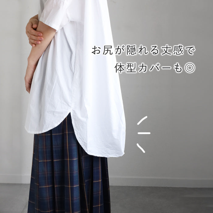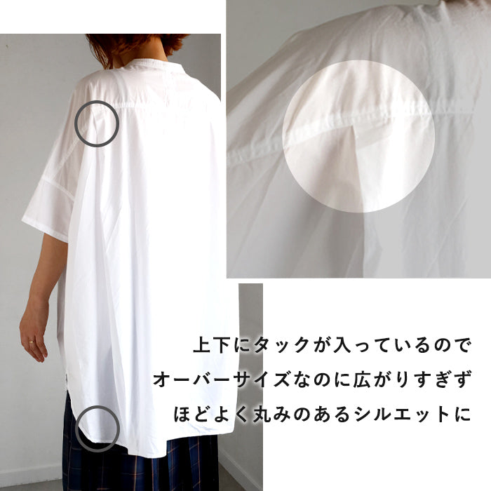 【3色】merciful(マーシフル) ビッグ ショートスリーブ チュニック シャツ 綿 フリーサイズ レディーストップス 大きいサイズ ゆるい ゆったり 体型カバー [MF4200]