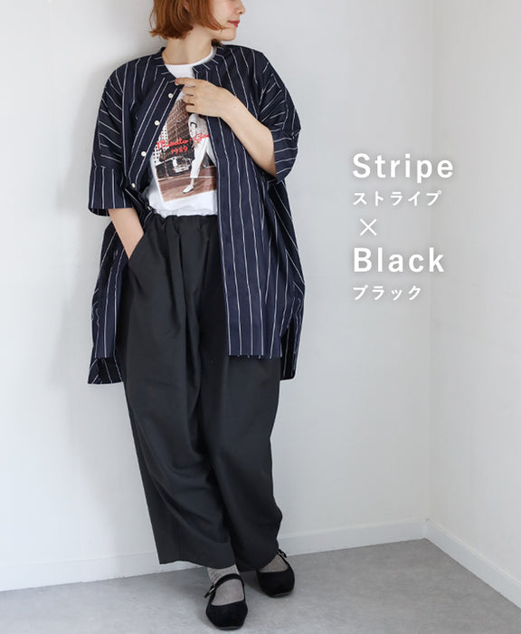 ゆったりシルエットでしめつけず、体型カバーも叶えます。通勤や通学でも重宝しそう。飽きの来ないベーシックなデザインなので永くご愛用できるアイテムです。