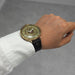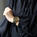 真鍮ケースは使用するほど経年変化が進んでいくので、風合いの変化もお楽しみいただけます。パッと目を惹くメカニカルなデザインが、コーディネートのアクセントに。スチームパンクがお好きな方にもおすすめです。