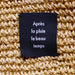 「Après la pluie le beau temps」 は「やまない雨はない」という意味のフランス語です。