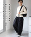 ウエストからしっかりと入ったタックと、裾でしぼりこんだダーツで絶妙なシルエットを作っています。