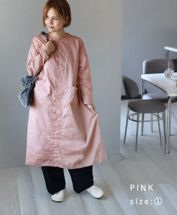 小さな襟とゆったりロング丈が特徴的なアトリエローブ