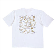 どこか懐かしく、ちょっと不思議なその世界観が、Tシャツというシンプルなキャンバスの上でやさしく息づいています。