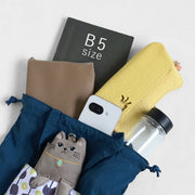 B5サイズ、タブレット、長財布、水筒、ポーチなど様々なものが入ります。