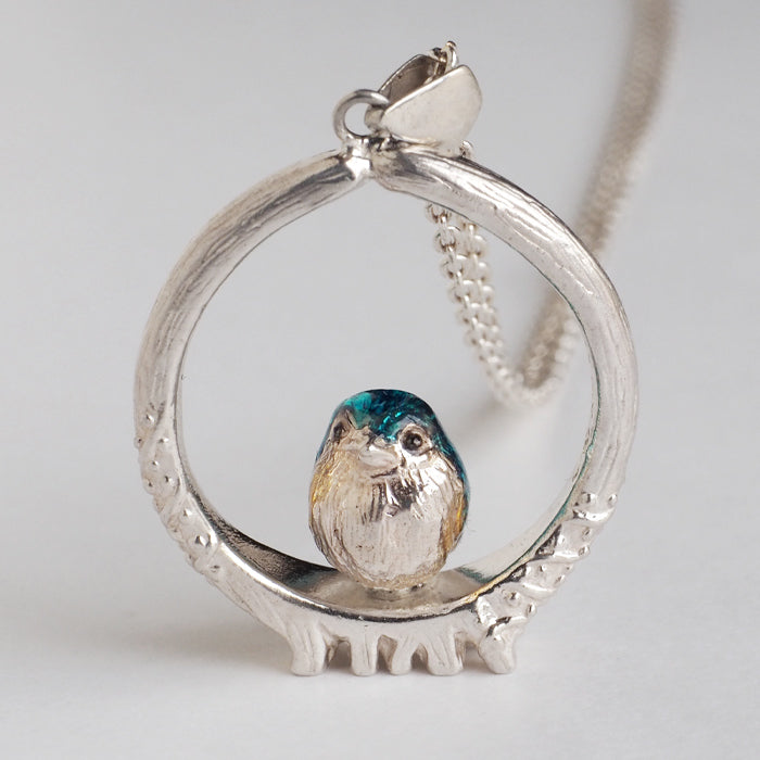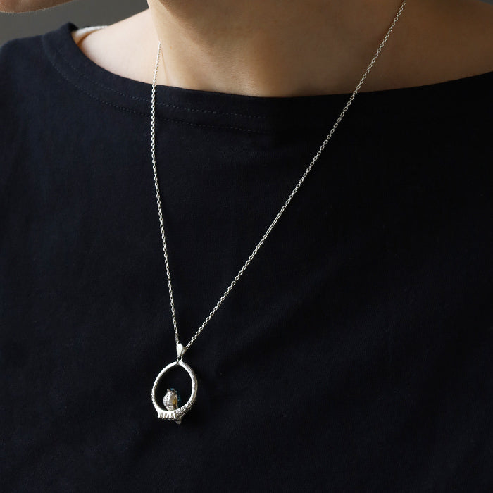 胸元で楽しめるナチュラマさんの可愛らしい世界観胸元でゆらゆら揺れるルリビタキに心が癒される「さりげなく かわいい」ペンダント。