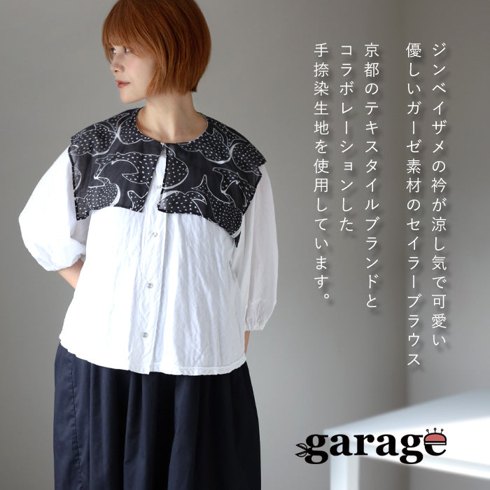 【2色】ガーゼ服工房 garage(ガラージ)ダブルガーゼ ジンベイザメ セイラーブラウス レディース [BL-45] 中西達也・中西陽子 ガーゼ服 ハンドメイド ブランド