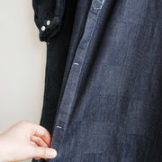 素材感は軽くソフトな触り心地で。防縮、よじれ防止、毛焼きを行っていない、昔ながらの雰囲気が楽しめる5ozの生機デニムです。 ジーンズのように、着こむほどに生地の風合いは柔らかくなり、色味も徐々に変化してゆく。育てるワンピースです。 |