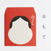 ふくわらいとして遊べる、ちょっと特別なぽち袋です。 表には、まだ何も貼られていない「おかめ」のシンプルなイラスト。