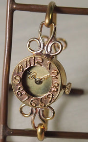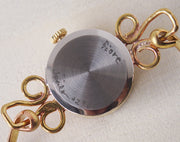 ケース本体の裏側には、無造作で味のある作家のサインがさりげなく調印されています。 小さく華奢な作り。ふんわりと咲く花のようなデザインは、女性らしさをグッと引き立ててくれます。スーツなどカチっとしたスタイルとあわせると、さり気なくやわらかな雰囲気をプラスしてくれます。 ベルトの後ろ側も、フロントと同じく有機的なデザイン。どの角度から見ても、アクセサリーのような華やかさがあります。留め具は片方の穴に引っ掛けてパチンと留めるタイプ。簡単につけられるところもGOODです♪ |