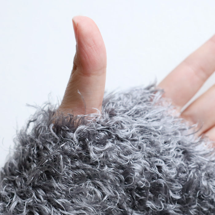親指を通す穴もあるので、手の甲をしっかり覆い、まるで繭に包まれるような心地よさと温もりがあります。