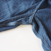 経糸は40年代を意識した淡さの残るインディゴと、 緯糸はグレーからなるインディゴヘリンボーンデニム。