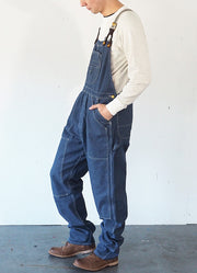 オーバーオールでは見慣れない、サスペンダー仕様のショルダー。 '50年代のアメリカンスタイルを彷彿とさせるDポケット。 |