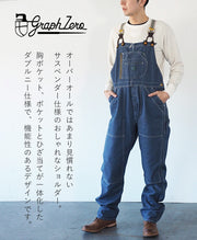 graphzero(グラフゼロ) ブレース Dポケット オーバーオール インディゴ ヘリンボーンデニム メンズ [GZ-BROA-0207-IDHB]