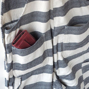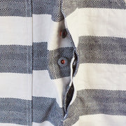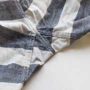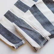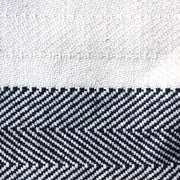 遠くから見ると大きなボーダーに見えますが、生成りのヘリンボーンとインディゴのヘリンボーンで織られたこだわりの生地になっています。