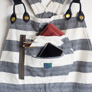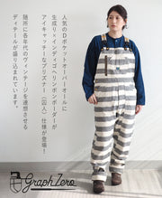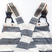 生成ヘリンボーンとインディゴヘリンボーンを組み合わせたインディゴボーダー柄のプリズナー(囚人)仕様です。しましまのオーバーオールは中々他にはないインパクトのあるデザインです。