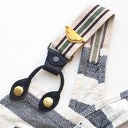 サスペンダー仕様のショルダー。柔らかいゴム素材で、お好きな長さに調整できます。