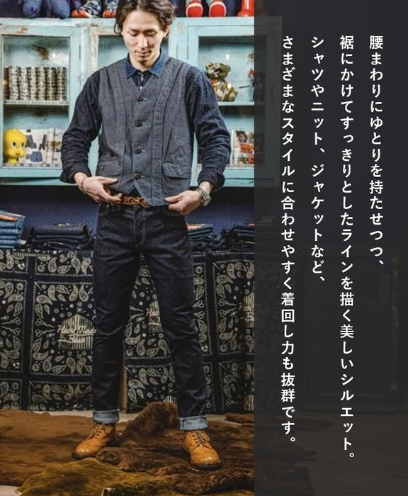 経糸は高級な繊維長の長い綿をインディゴロープ染色で仕上げたものを使用し、きめの細かい上品な縦横に伸びるストレッチ性の高い13ozデニム生地となっています。