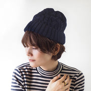フィット感のあるリブ編みが頭を暖かく包み込みます。
