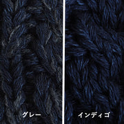 インディゴのコットン糸と杢グレーのウール糸を引きそろえて編みたてたグレーとコットン100%のインディゴの2色展開です。