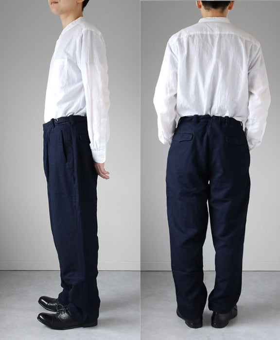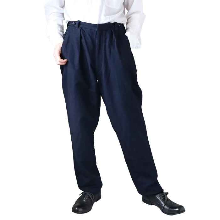 40s-50s のクラシカルなトラウザーをイメージし、太ももはゆったりとテーパードかけたシルエット。こだわりのディテール満載のトラウザーの登場です。