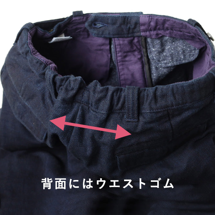 生地は二重織で織り上げたツイードライクな肉厚感楽しめる二重織デニム。