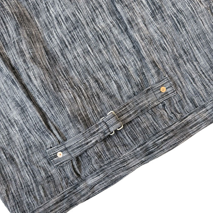 生機のデニム(防縮処理・毛焼きなどの整理加工などを行っていない、織り上げたままのデニム生地)ですので、見た目・サイズ感に個体差がございます。サイズは平均値となっております。