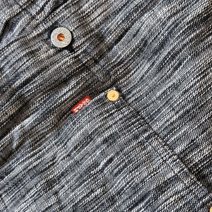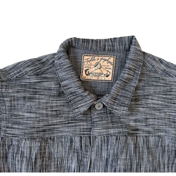 緯糸もグレーを使用し、タテヨコともにスラブ糸にすることで、荒々しい素材感が楽しめるgraphzeroならではのこだわりの生地に仕上がりました。