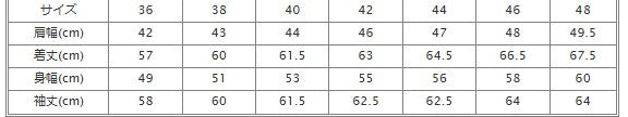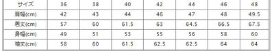 サイズ 36、38、40、42、44、46、48(男女兼用)