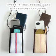 スマホやキーケース、ミニ財布、定期入れ、電子タバコなど手元に置いておきたい必需品を入れておくのにぴったりです。