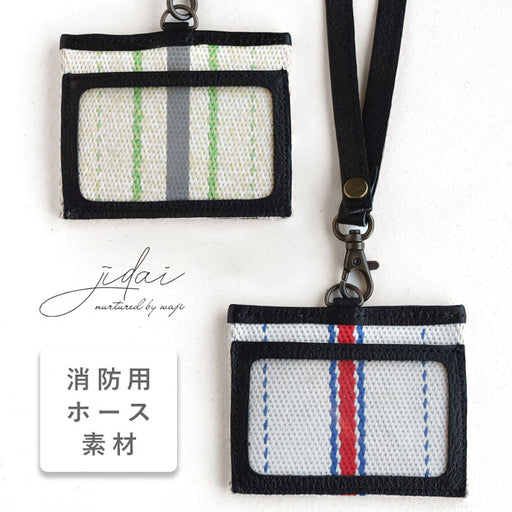 消防用ホースを素材として生かしたシリーズには、大阪府堺市消防局にて実際に使われ、既定の耐用年数を超えた消防用ホースを再利用。消防用ホースの内側はゴム素材、外側は耐摩耗性・耐熱性に優れる繊維や反射材が使われています。