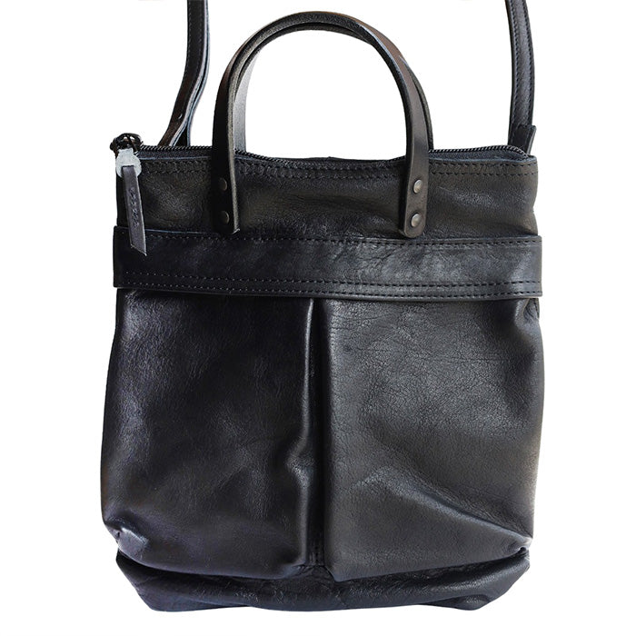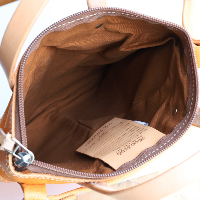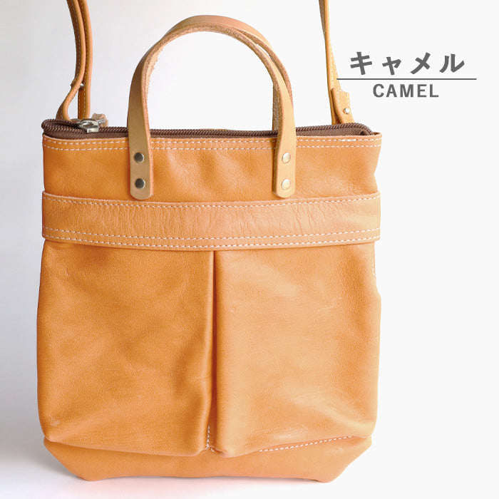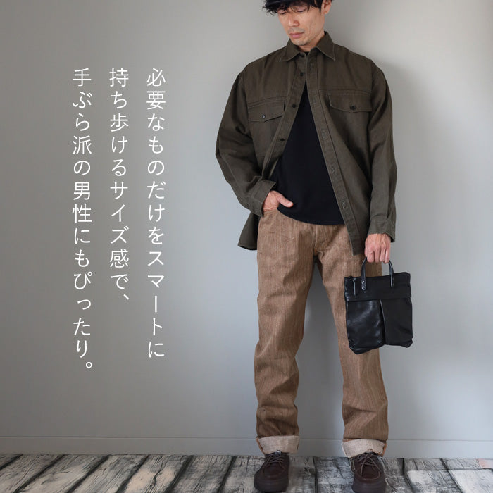 本革のオリジナルタグや、ショルダーストラップにも馬革を使うなど、細部にまで作り手のこだわりが感じられる仕上がり。シンプルながらも上質さが光ります。