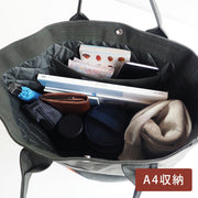ナイロンキルトは柔らかい手ざわりに加え、トートバッグ本体の軽量化にも繋がっています。
