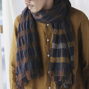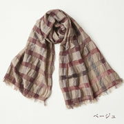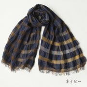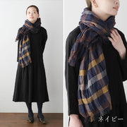 kobooriza 工房織座 ウール100% ウールリネン混 チェックショール メンズ・レディース [K-OS-HC04]