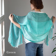 肩からふわりと羽織れば、身体のラインがほんのり透ける薄さが、春らしい軽やかさを演出します。 広げたとき、重ねたとき、それぞれに異なる表情が生まれ、さりげなく印象に残る存在に。