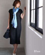 縫い目がないことで生地の伸びやかさがそのまま活き、肩にかけても首元に巻いても、どこにも硬さを感じさせません。自然な落ち感が生まれ、向きを気にせずまとえるのも嬉しいところです。