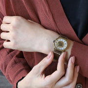 | 肌なじみのいい真鍮のケースで、さりげなく個性をアピール。 ガジュアルにも個性的にも使える腕時計です。 |