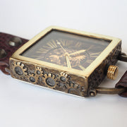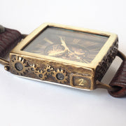 KINO(キノ) 手作り腕時計 チェンジワールド SUN&MOON スクエア 真鍮 ワインブラウン [L-17-WBR]