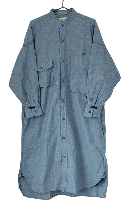 スタンドカラーの襟にワーク要素をプラスした大人可愛いワンピース。
