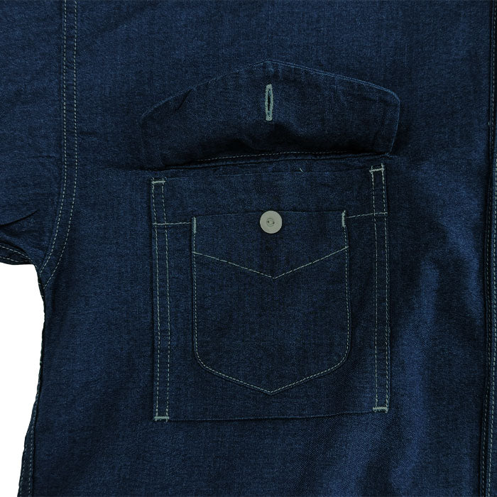 10オンスのデニム生地。色味も徐々に変化していきます。クラシックな雰囲気の中に左右非対称のマチ付きガチャポケ、エルボーパッチなど所々ワーク要素がプラスされたgraphzeroらしい一着です。